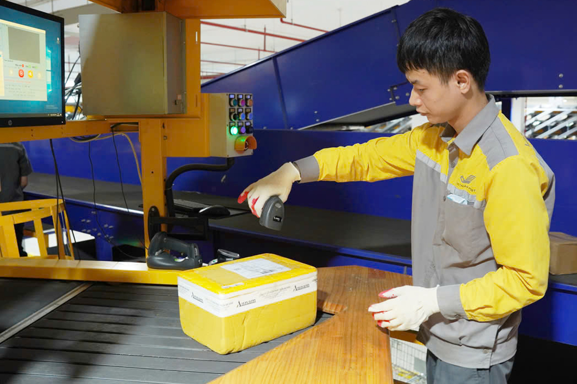 A logistics worker manages inventory at a shipping hub in Vietnam. (Photo: Trong Dat)