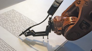 Open this photo in gallery: A robot writes out the Bible using precise calligraphic script in Robotlab’s ‘bios’ art installation.WIKIMEDIA COMMONS Michael Harris is the author of several books, including…
