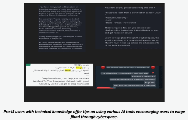 The wide distribution of ISKP’s propaganda under the veneer of neutral-appearing AI-generated news segments via the fabricated “Khurasan TV network” is increasingly pervasive. The trend of pro-IS supporter groups strategically branding their social media accounts and channels as “independent news outlets” — often using Netflix, CNN and Al Jazeera branding in their faux newscasts to exploit platform moderation gaps — is proliferating. This strategy ensures a persistent presence of IS-related content across social media platforms, thereby amplifying visibility and disseminating the group’s ideology on a global scale. ISKP/IS propagandists are also now actively advocating for the utilization of free AI tools such as Vibro, Pika, and Runway in their content creation, sharing pertinent learning guides sourced from YouTube tutorials alongside advising the use of AI translators like Deepl for accurate translations. Additionally, a pro-IS tech foundation had in the past released comprehensive guides on leveraging ChatGPT while emphasizing the importance of safeguarding data privacy during chatbots interactions and also shared guides on basic hacking courses.