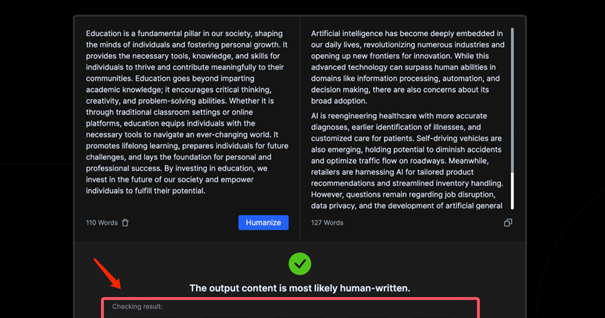 Besides being true to the original text, the rewritten text is high-quality, error-free, and 100% original. This means that besides passing an AI writing checker, it’ll also pass checks by tools like GPTZero and Copyleaks with flying colors.