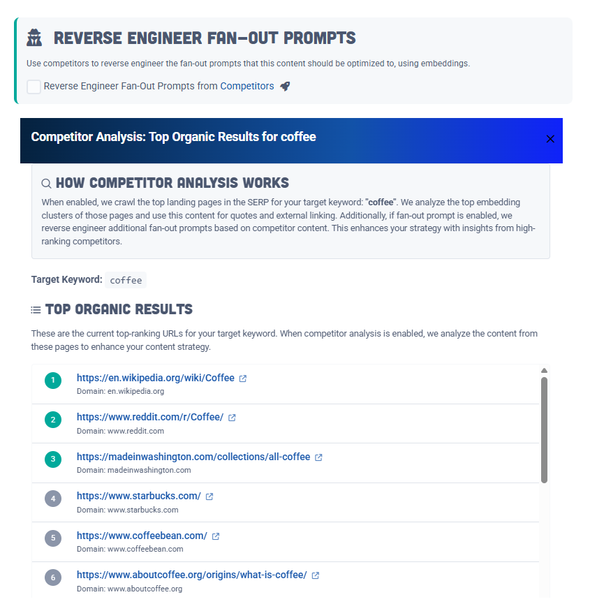 In addition, fan-out prompts should be reverse-engineered from top competitors in that SERP.
