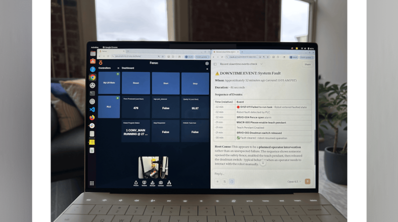 In practice, this means a system that captures everything happening on the robot or in an automation cell. And instead of streaming that raw data to a remote engineer or giving someone VPN access, you simply point your own LLM at the data source.